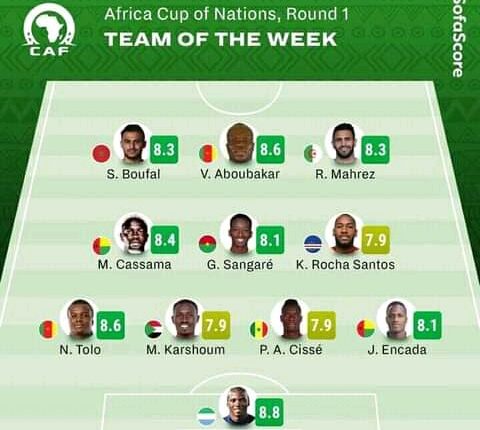 Likewise, Cameroonian captain V. Aboubakar and Moroccan S. Boufai completed the list of the first eleven for the week one of the 33rd AFCON in Cameroon.